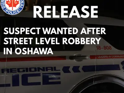 Police are searching for a suspect after a street level robbery in Oshawa.