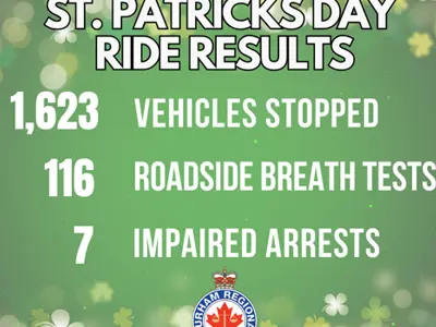Between Saturday, March 15, 2025 and the early morning hours of Tuesday, March 18, 2025, members from DRPS Traffic Services and all five DRPS Divisions conducted a number of RIDE initiatives for St. Patrick’s Day and its related festivities.