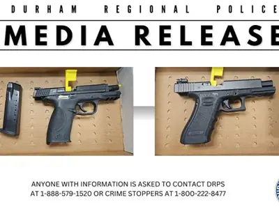 A male is facing numerous charges after two firearms and drugs were located in a vehicle in Courtice.