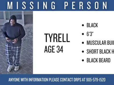 Tyrell, age 34, was last seen at 2:00 p.m., on Wednesday, March 4, 2026, in the area of Gordon Street and Victoria Street West.