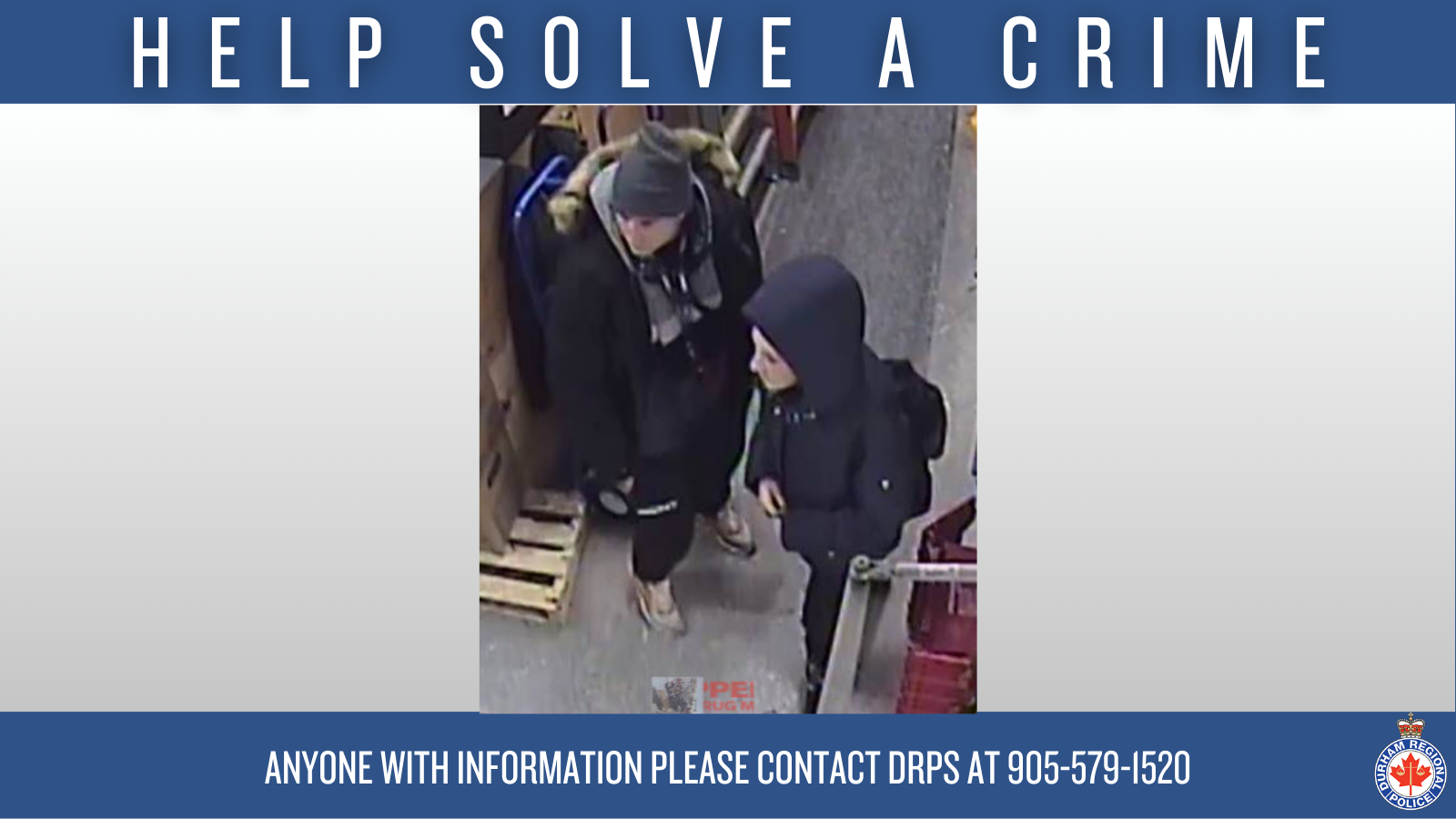 On Sunday, December 14, 2025, between 7:45 p.m. and 8:15 p.m., A male and female attended the Shoppers Drug Mart located at 15 Westney Road in Ajax. The suspects entered a storage room inside of the business and stole four boxes filled with cosmetics valued at over $10,000 before fleeing through an emergency exit door.