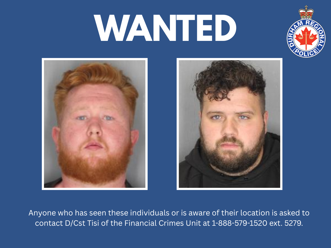 Anyone who has seen these individuals or is aware of their location is asked to contact D/Cst.Tisi of the Financial Crimes Unit at 1-888-579-1520 ext. 5279.