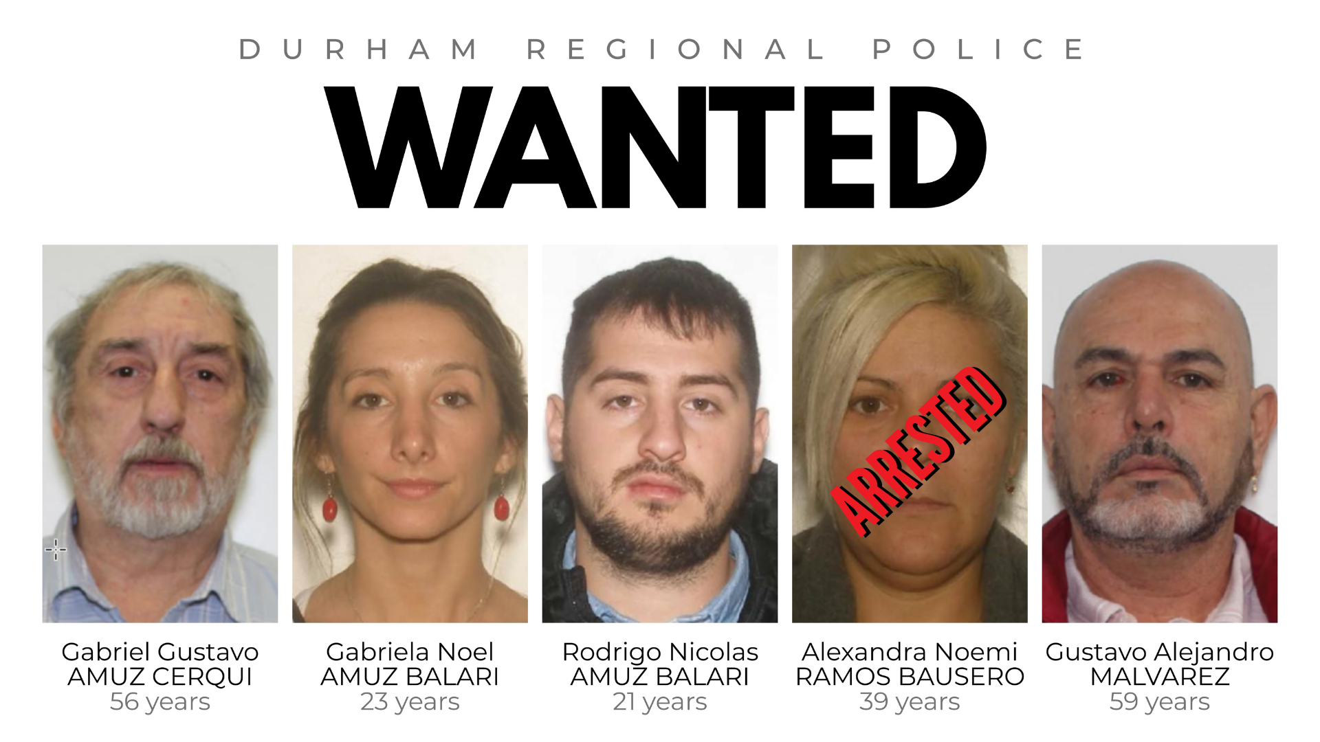 Investigators are urging the remaining suspects to contact counsel and turn themselves in to police. Anyone who is found to be assisting these suspects to evade police is guilty of an offence under the Criminal Code of Canada and will be prosecuted to the full extent.